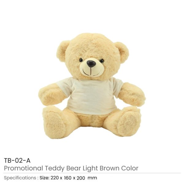 Teddy bears plush toys for promotions are available in Light brown color, and wearing a white T-shirt.